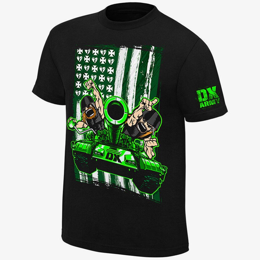 This t-shirt is a homage to DX’s famous full-on invasion of WCW in 1998. The image of DX rolling down the street in an army tank toward a taping of WCW Monday Nitro became one of the iconic images of the Attitude Era. After forming in 1997, DX were lewd, aggressive, unapologetic and anti-establishment - making life misery for authority figures and opponents alike. Years after going their separate ways, the original members Triple H and Shawn Michaels reformed, continuing to bruise and humiliate all those who dared to get in their path.